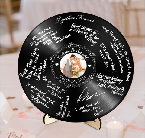 Özel vinil kayıt düğün ziyaretçi defteri alternatif yuvarlak kayıt düğün mesaj defteri ile özel fotoğraf ve adı